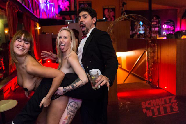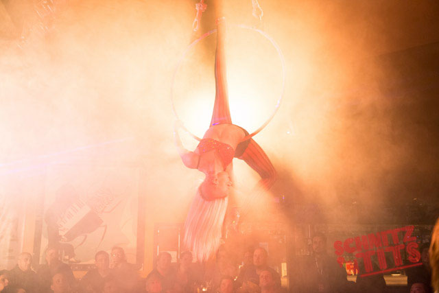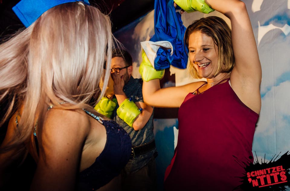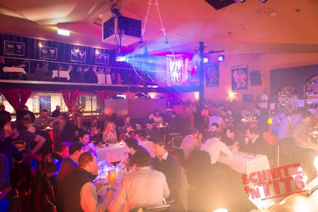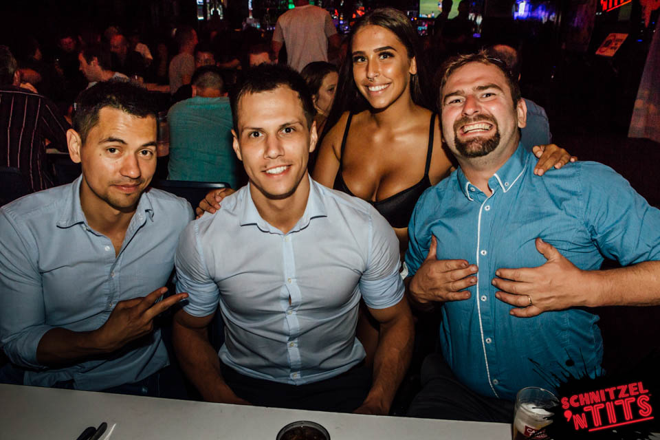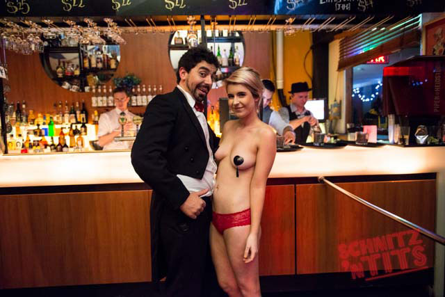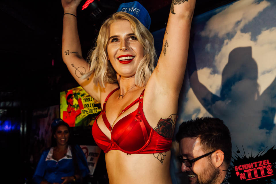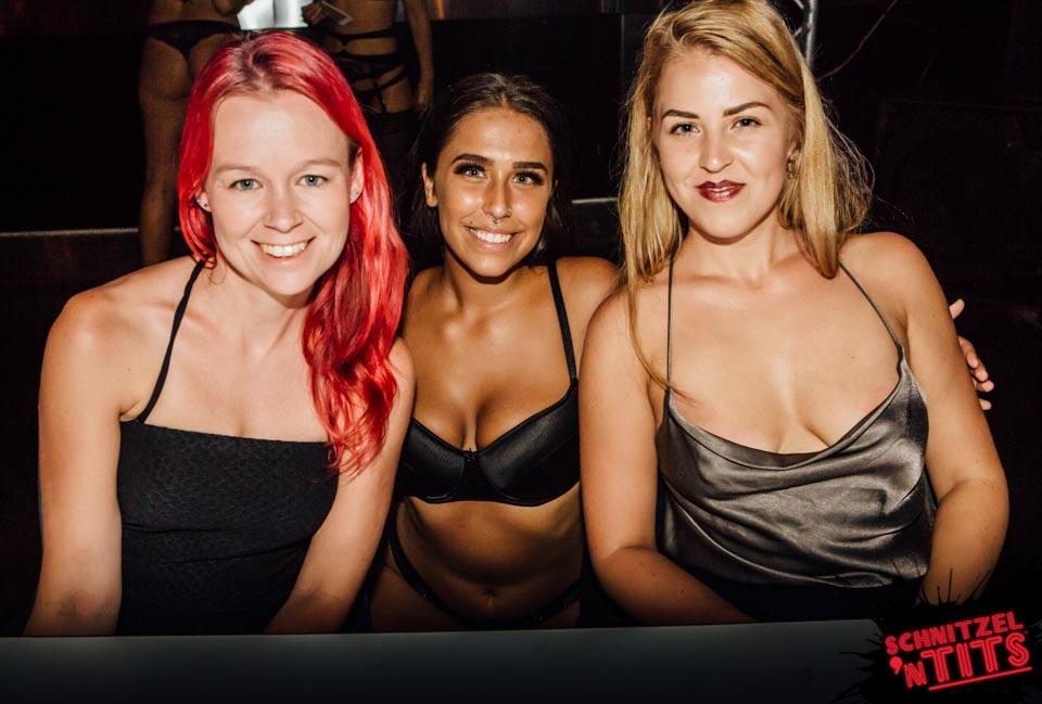 A weekly changing variety act to kick start the night, shortly followed by 2 showgirls getting in and amongst the crowd. Purchase a golden ticket off one of the showgirls to see your friend get pulled in on stage or on to the table to get involved in their show. Good for a giggle and lasting memory “Remember that time at Schnitzel n Tits when….”
