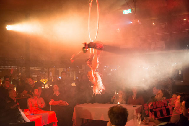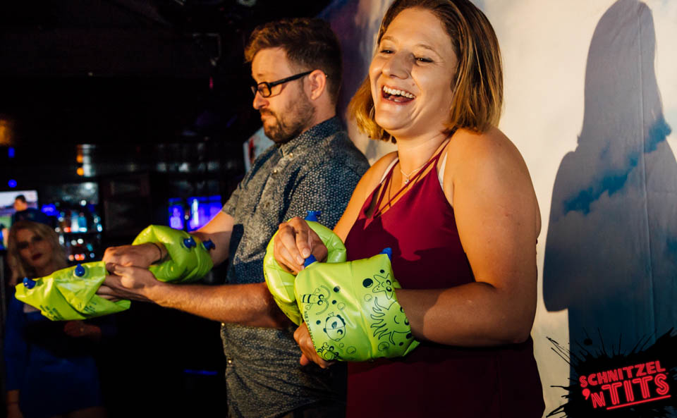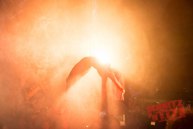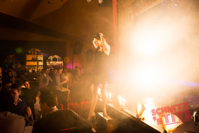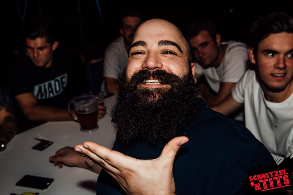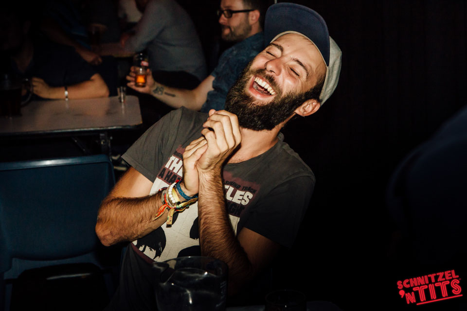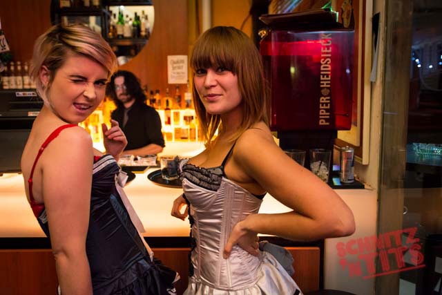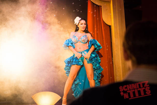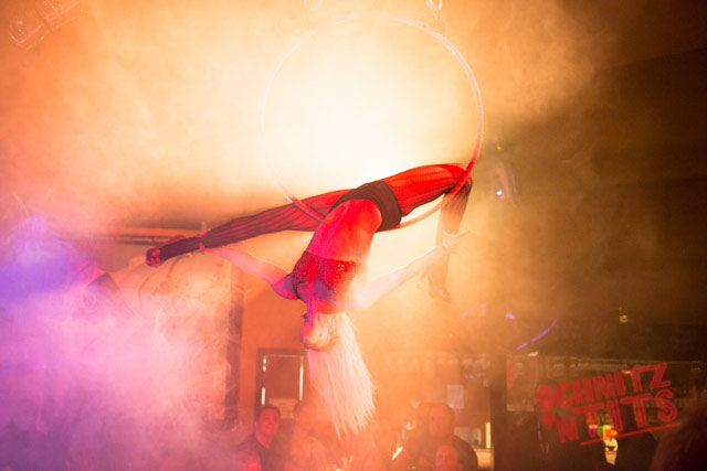 A weekly changing variety act to kick start the night, shortly followed by 2 showgirls getting in and amongst the crowd. Purchase a golden ticket off one of the showgirls to see your friend get pulled in on stage or on to the table to get involved in their show. Good for a giggle and lasting memory “Remember that time at Schnitzel n Tits when….”