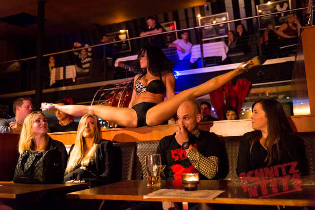 Sit back, relax, and let us take care of you! Over the course of the night, you'll be treated to our signature schnitzel feast. And while you enjoy yourself you can expect three shows throughout the night, each different from the last. They feature the talents of our girls, and give you the opportunity to get in on the fun as well!